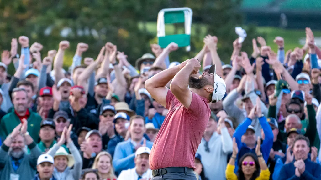 ウイニングショットを放った直後のマスターズチャンピオン、ジョン・ラーム(スペイン)